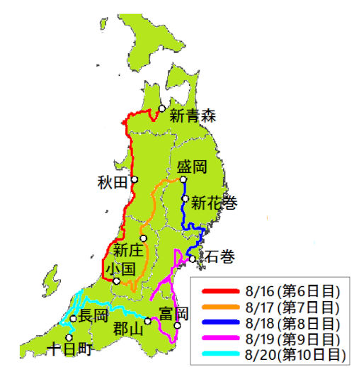 津軽海峡を青函トンネルで抜けて、8/16(第6日目)からは本州の旅のスタートです。懐かしのブルートレイン『あけぼの』に宿泊できる小坂レールパークなどに立ち寄り、旅を続けていきます。ミニ新幹線やBRTといったユニークな公共交通への乗車も体験。東日本大震災の影響を強く受けた地域を通り、復興の様子と未だに残る地震の爪痕についても知ることができました。